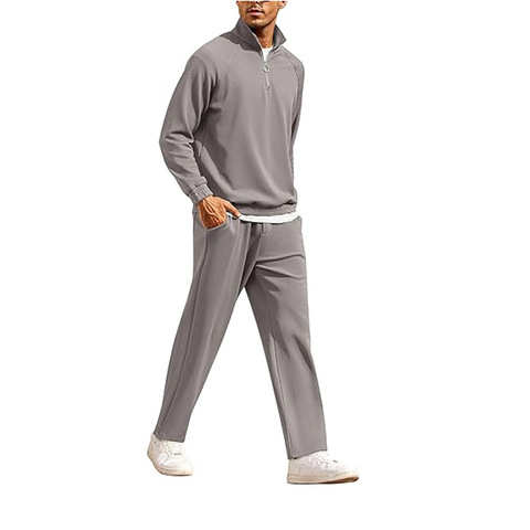 VBOSI 2-Piece ekose kıyafetler erkek kadın uzun kollu eşofman setleri yarım Zip yıkanmış tişörtü Joggers nefes çevre dostu
